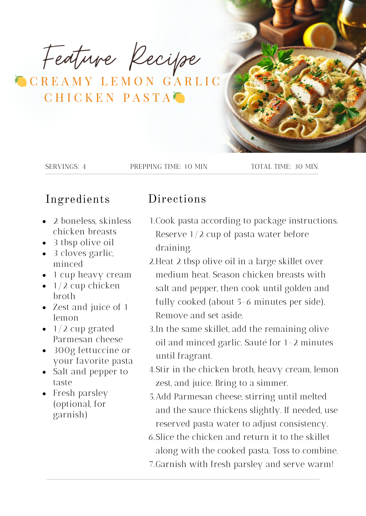 ๐ Creamy Lemon Garlic Chicken Pasta ๐